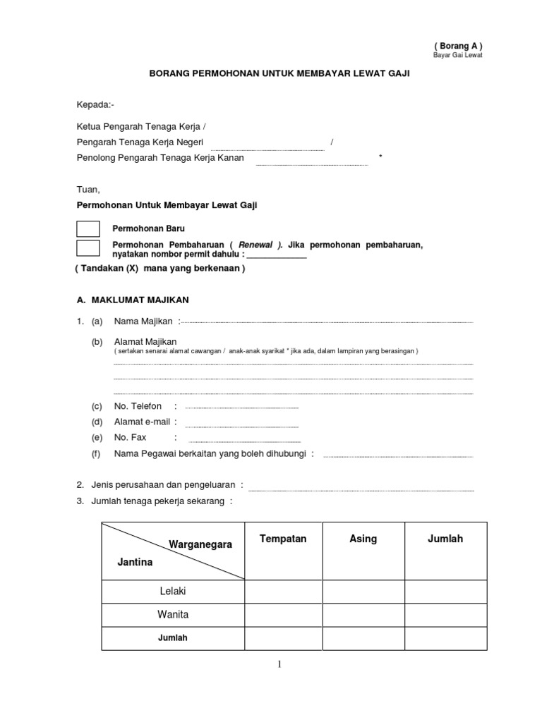 Borang A Permohonan Utk Mbyr Gaji Lewat Pdf